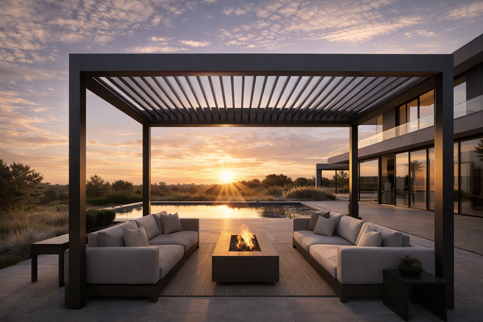 The adjustable louvered roof system allows you to control sunlight, shade and airflow with ease. Open the louvers for ventilation and natural light, or close them to create a sheltered environment when needed.