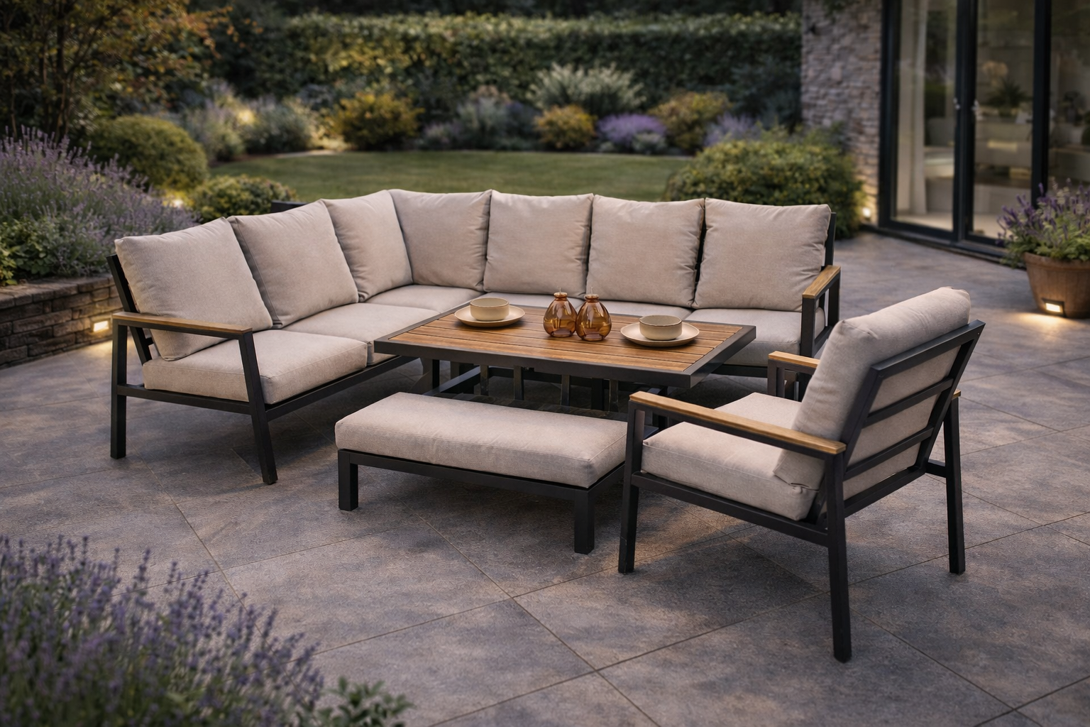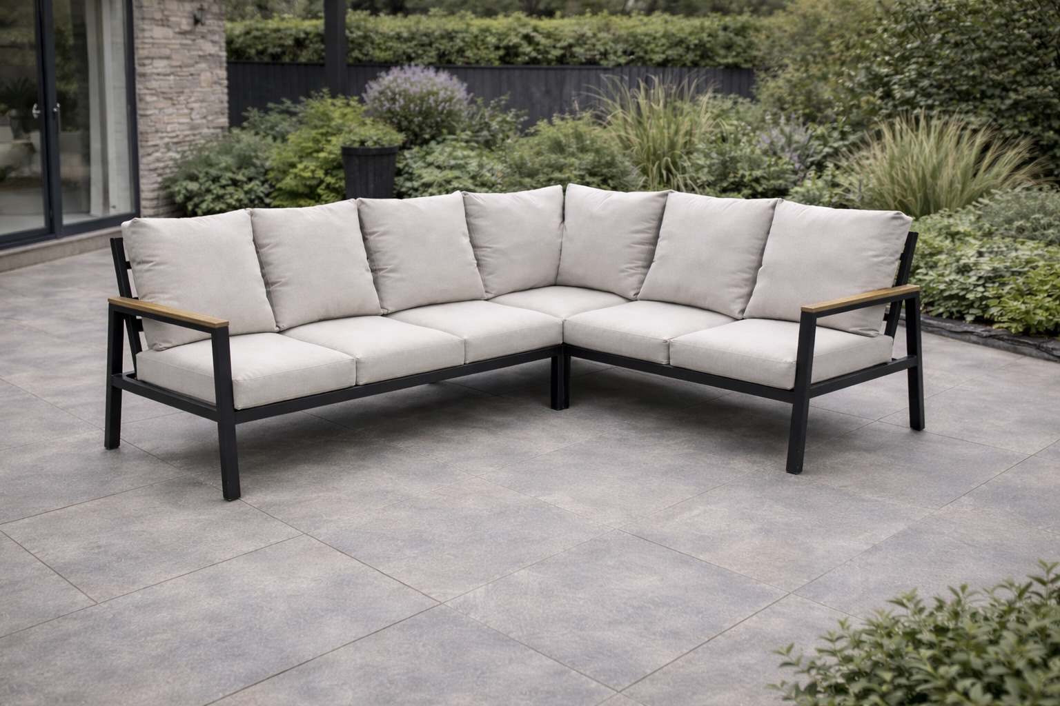 Clean architectural lines, warm wood-effect detailing and neutral tones give the Arden range a modern yet inviting aesthetic suited to contemporary patios and garden spaces.