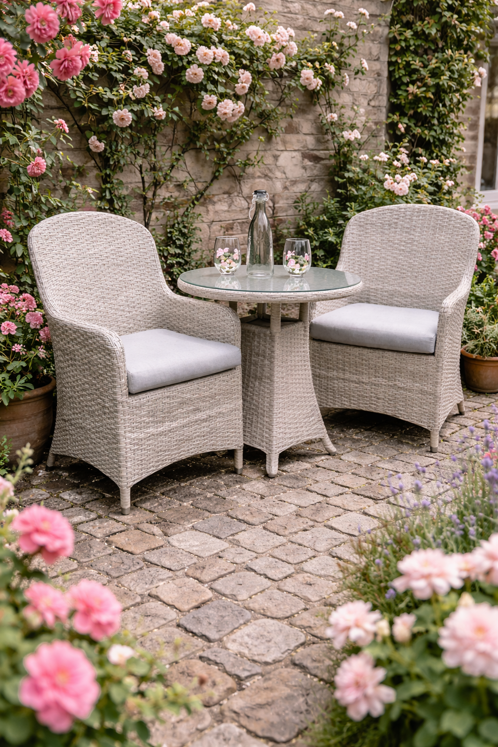 The Belgrave Bistro Set is designed for compact outdoor spaces where comfort and style still matter.