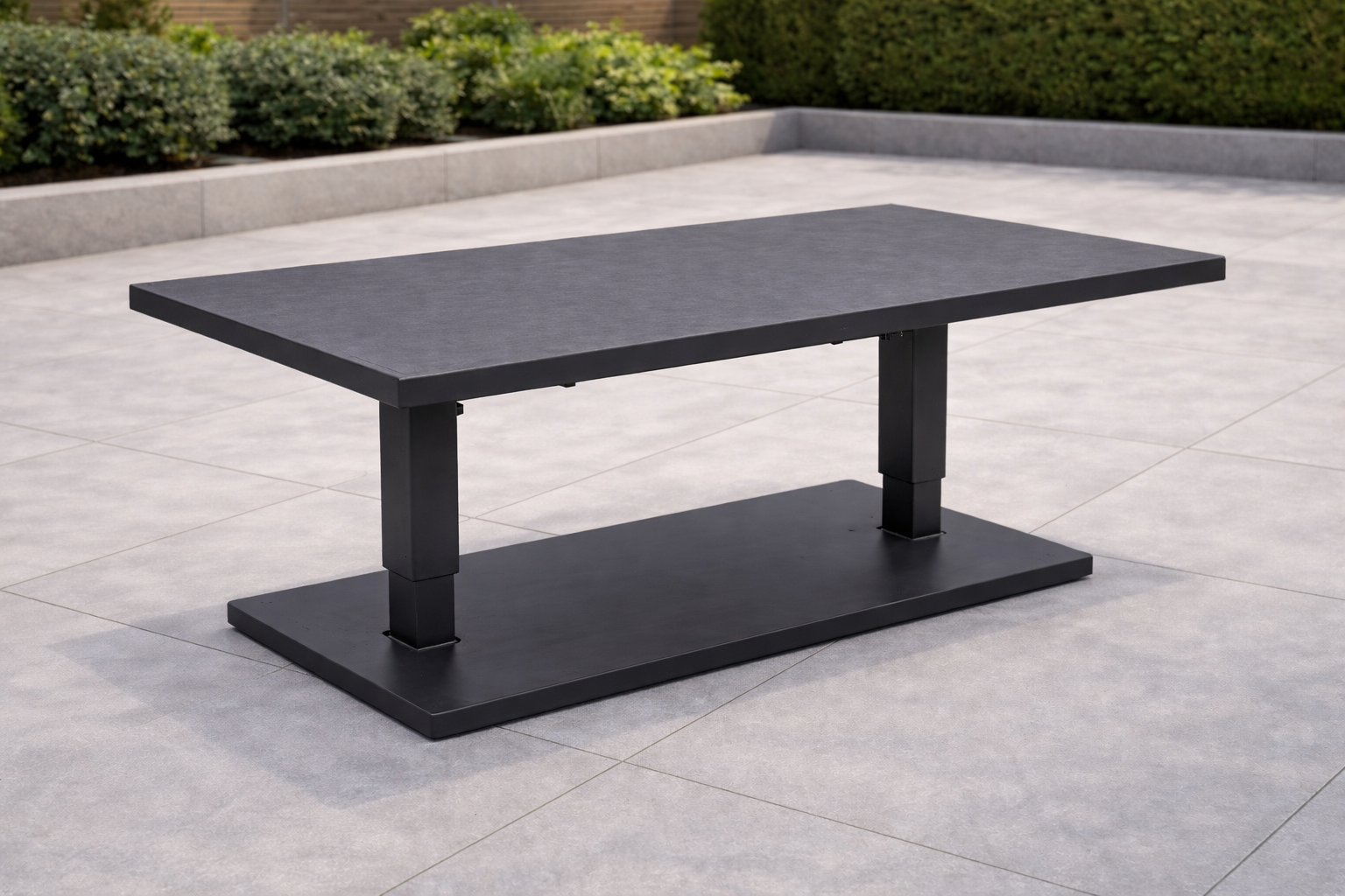 The aluminium frame construction ensures strength, durability and low maintenance performance year-round. Woven panel detailing within the arm sections adds texture and depth while maintaining a sharp modern silhouette.
